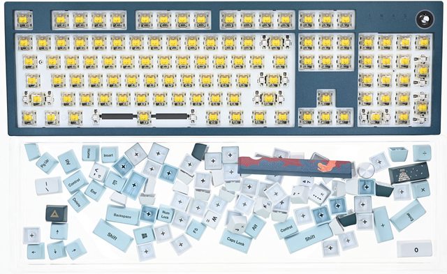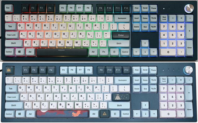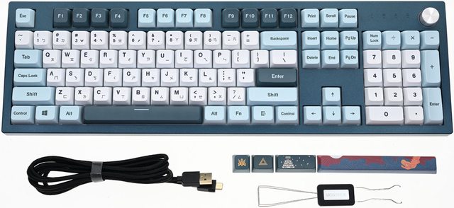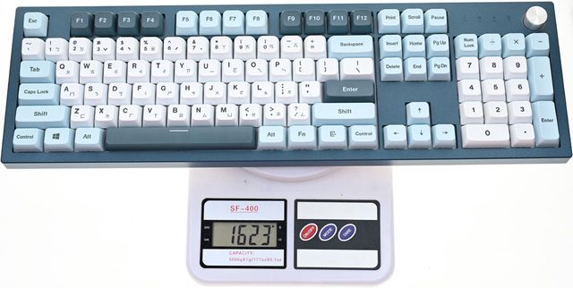 ▼鍵盤採用標準100%尺寸配置,右上有調整旋鈕,上下蓋2種配色,鍵帽3種配色,鍵盤背