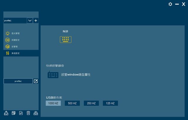 ▼其他設定分頁,可設定N鍵(N-Key Rollover)開啟/關閉、設置windows鍵盤屬性、USB報