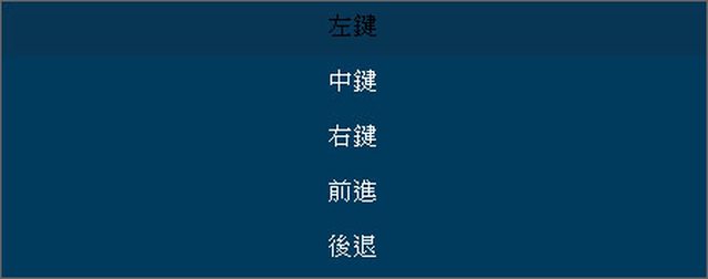 ▼滑鼠基本按鍵模式,功能可選擇左鍵、中鍵、右鍵、前進、後退