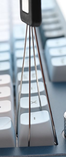 ▼將鋼絲套入鍵帽下方,往上垂直拉動便可拔出鍵帽