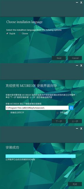 裝檔。執行安裝檔時首先選擇語言,之後設定安裝路徑、是否安裝後立即打開、是否開機