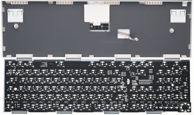 ●在PCB電路板及鍵盤底部包覆可以吸收震動及噪音的矽膠材質防震吸音墊,讓聲感更完