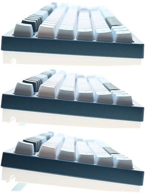 ▼以下為未使用後腳架(上)、使用第一段後腳架(中)、使用第二段後腳架(下)的鍵盤傾斜