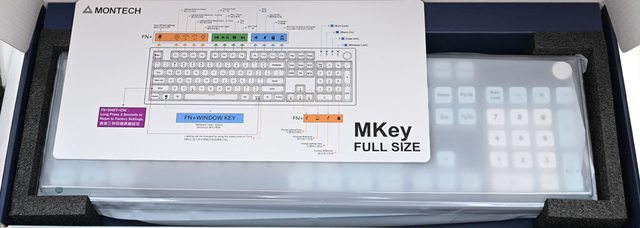 ▼打開外盒,最上面是鍵盤組合鍵操作使用說明圖卡,下方透明泡殼蓋住包著半透明塑膠