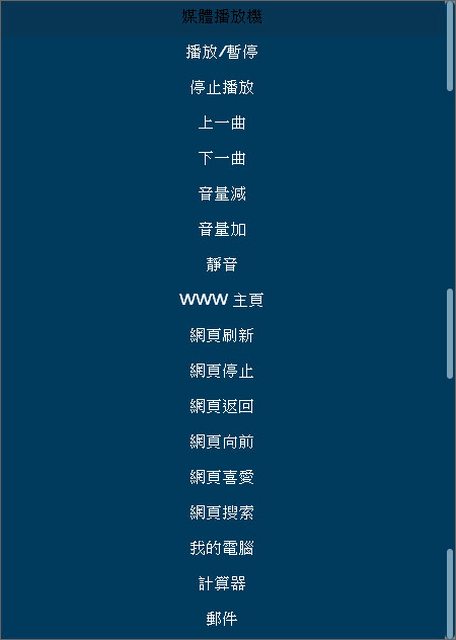 音量減、音量加、靜音、WWW主頁、網頁刷新、網頁停止、網頁返回、網頁向前、網頁喜