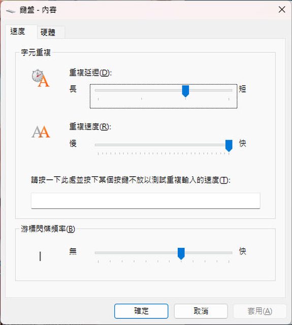 ▼按下其他設定分頁的設置windows鍵盤屬性按鍵,可直接叫出Windows系統的鍵盤內容頁