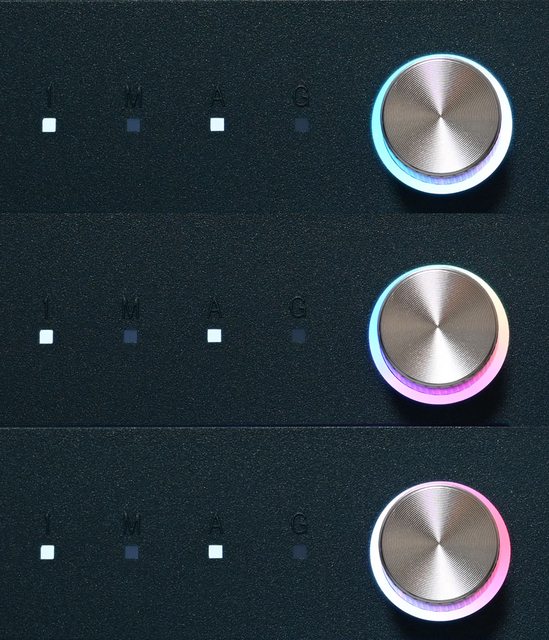 ▼旋鈕的旋轉編碼器及周圍的8個RGB LED