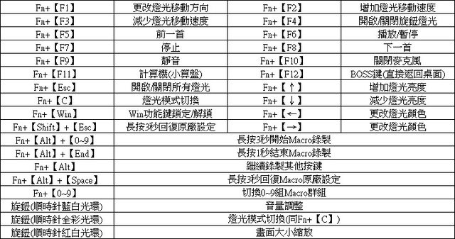 ●N鍵無衝突設計,Fn鍵組合操作具備燈光控制、Windows鍵鎖定、Macro巨集錄製、F1至