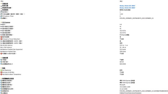 ▼匯流排硬體資訊內容,KIOXIA CD6-R U.3 Gen4 NVMe 3.84T SSD以PCIe 4.0 x4連接,