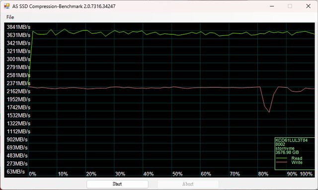▼KIOXIA CD6-R U.3 Gen4 NVMe 3.84T SSD的AS SSD Compression-Benchmark傳輸速度測