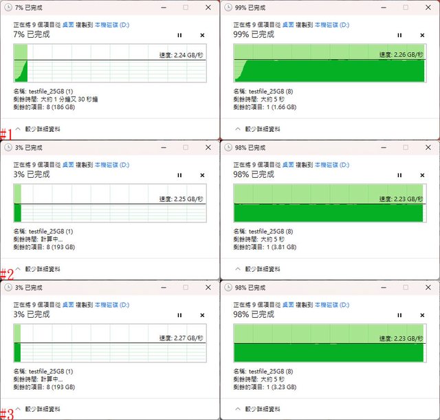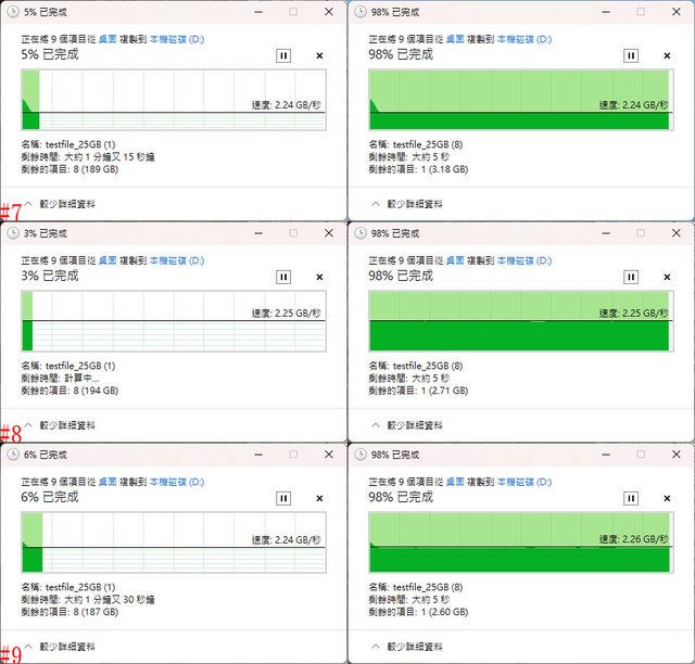 ▼第7至9次寫入狀況如下圖,均維持在2.24至2.26GB/s的速度