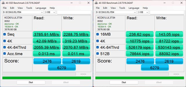 ▼KIOXIA CD6-R U.3 Gen4 NVMe 3.84T SSD的AS SSD Benchmark測試