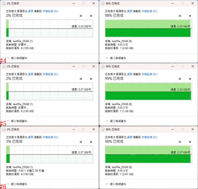 ▼第4至6次寫入狀況如下圖,均維持在2.22至2.27GB/s的速度