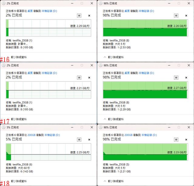 ▼第16至18次寫入狀況如下圖,均維持在2.21至2.29GB/s的速度