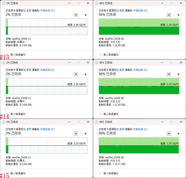 ▼第13至15次寫入狀況如下圖,均維持在2.25至2.28GB/s的速度