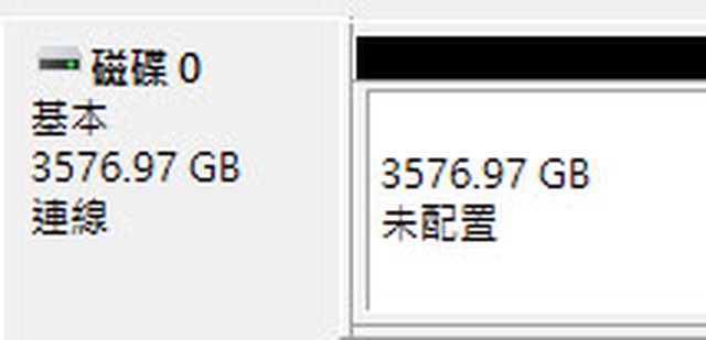 3576.97GB(因為廠商算法是1TB=1,000,000,000,000位元組,而作業系統算法是