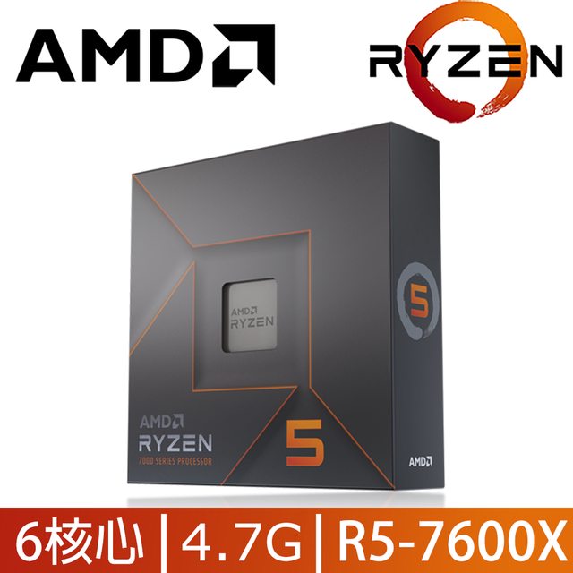 AMD Ryzen 5-7600X 4.7GHz TB5.3 6核心 中央處理器