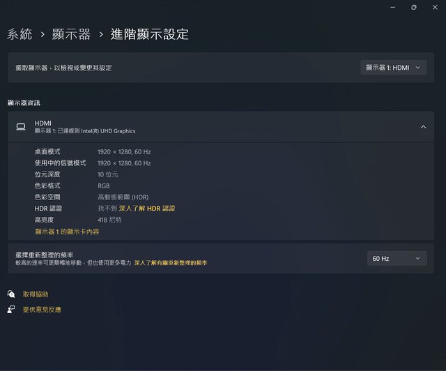 在Intel顯示也可以不開HDR把輸入設為BPC_10與444