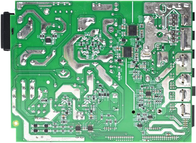 ○電路板背面焊點整體做工良好,大電流線路有敷錫處理,12V迴路部分區域加上金屬板