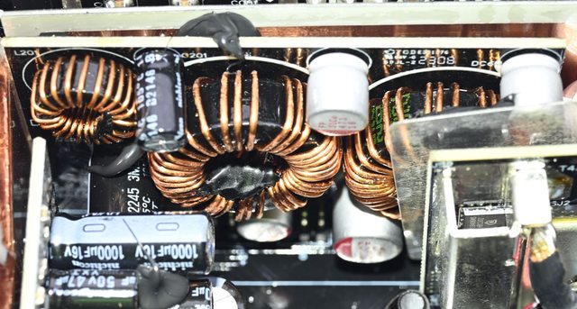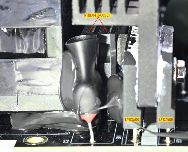 ▼電源供應器滿載輸出下保險絲/共模電感/橋式整流(上圖)及橋式整流/整流MOSFET/APFC