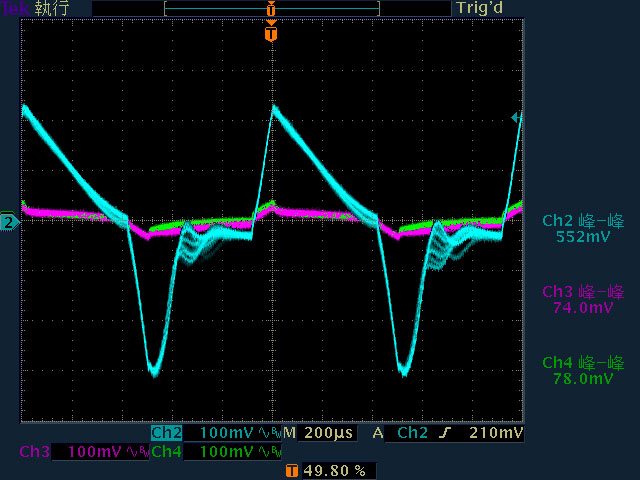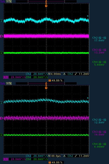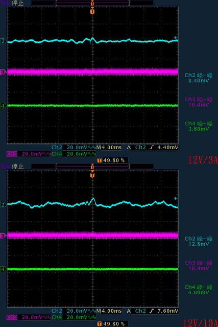 載輸出下12V/5V/3.3V各路低頻漣波分別為17.6mV/13.2mV/5.6mV