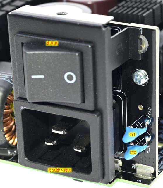 ,只控制內部電路決定電源是否運作。共模電感/保險絲/突波吸收器有包覆套管