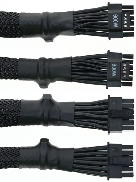 ▼2條12VHPWR黑色編織網包覆模組化線路,線路長度59.5公分。12VHPWR接頭上標示600W