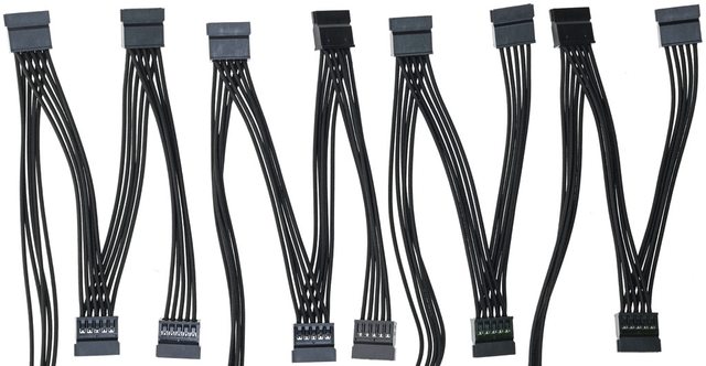 ▼4條SATA接頭黑色傘繩編織線模組化線路,提供14個直式SATA接頭,2條配置4個接頭,2