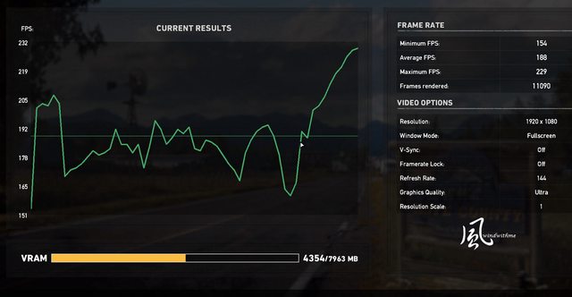 1080p特效超高、幀數生成關閉、DLSS關閉 => 145 FPS