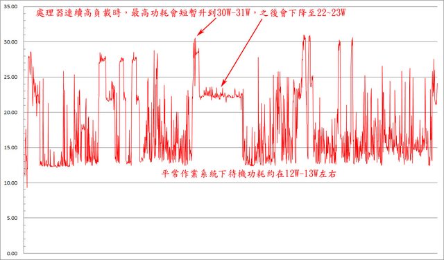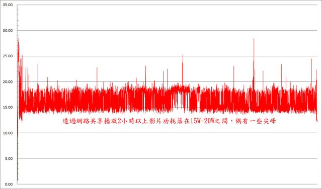 ▼透過網路共享播放2小時以上電影的整體功耗落在15W-20W之間,偶爾出現一些尖峰
