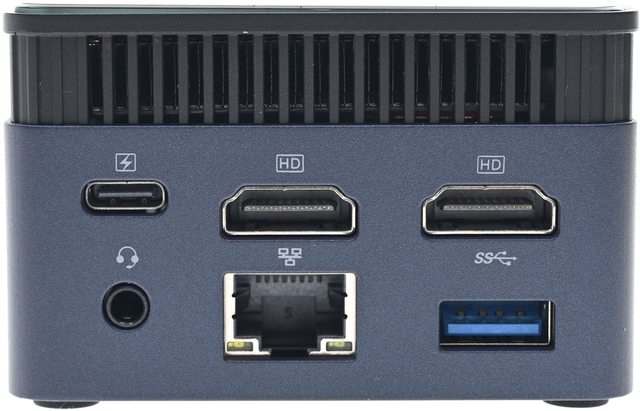 ▼ZX01 PLUS後方有散熱通風口、Type-C電源輸入埠、2個HDMI 2.0輸出埠、3.5mm耳機麥
