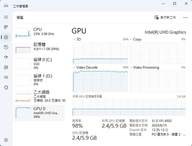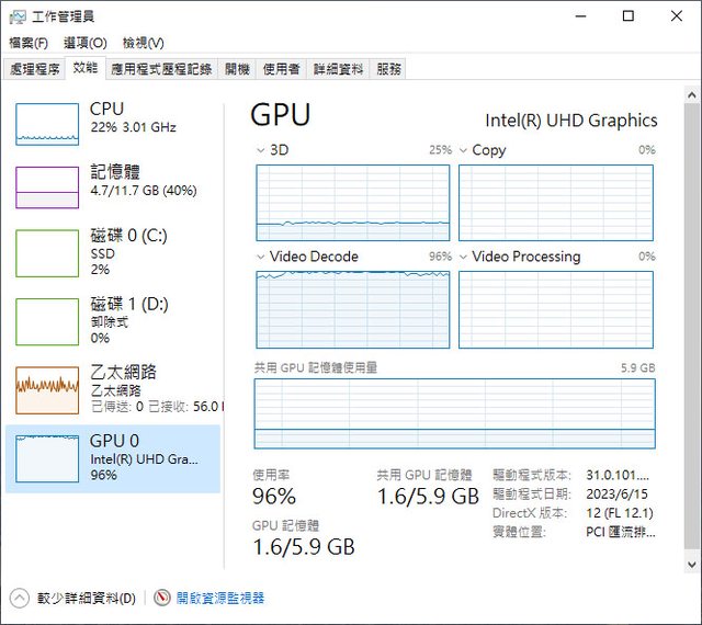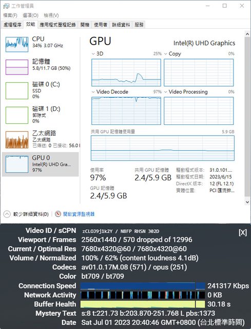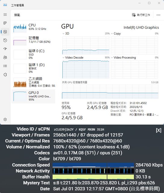 [email protected] AV1影片硬解時仍會使用所有GPU資源並造成CPU耗用率提升,偶爾會出現不流暢