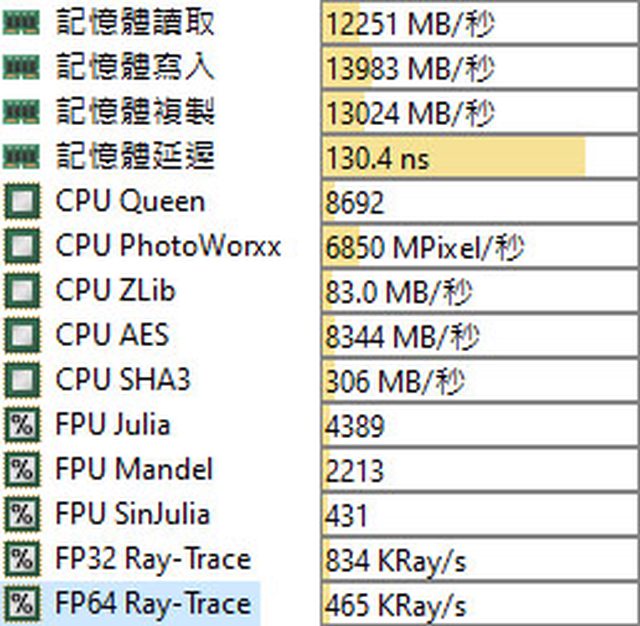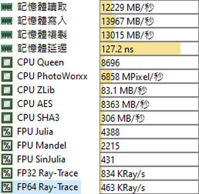 FPU SinJulia、FP32 Ray-Trace、FP64 Ray-Trace測試結果