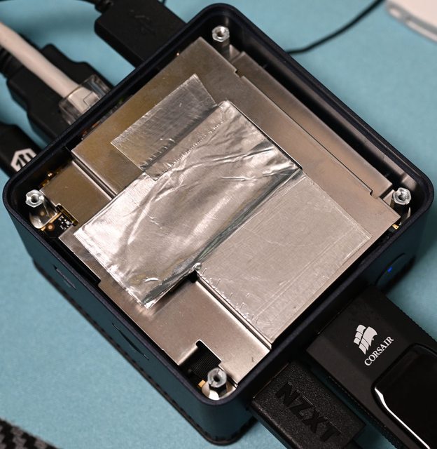 偏高,若把底部外殼換成金屬板,並搭配導熱墊,應可有效協助SSD散熱。頂部散熱通風