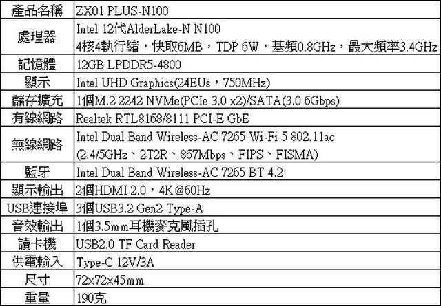 HDMI 2.0、1個RJ-45、1個TF讀卡機,Intel 12代AlderLake-N N100處理器具備4核4執行