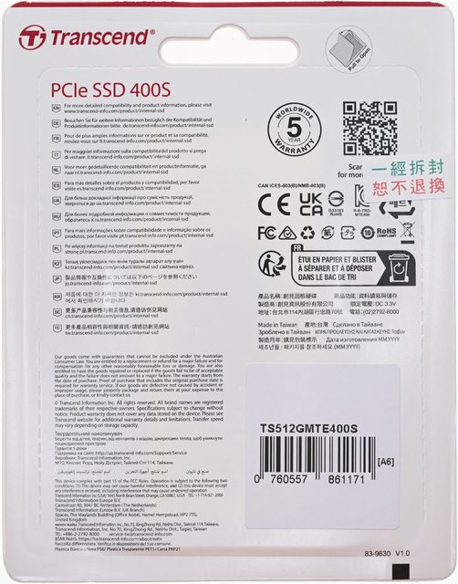 ▼吊卡包裝背面有商標、多國語言”更多產品相容性與相關資訊,請造訪創見網站”、5