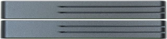 ▼外接盒本體與背蓋都採用鋁合金材質製作,有9條凹槽的背蓋使用1個螺絲固定。正面中