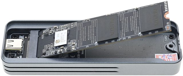 退出狀態。採用散熱效果優良的鋁合金材質堅固外殼,支援M.2 2280尺寸NVMe/SATA SSD