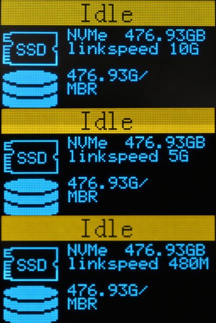 ▼Idle頁面可顯示SSD協議(NVMe/SATA)、SSD總容量、USB連接速度(10G/5G/480M)、磁碟
