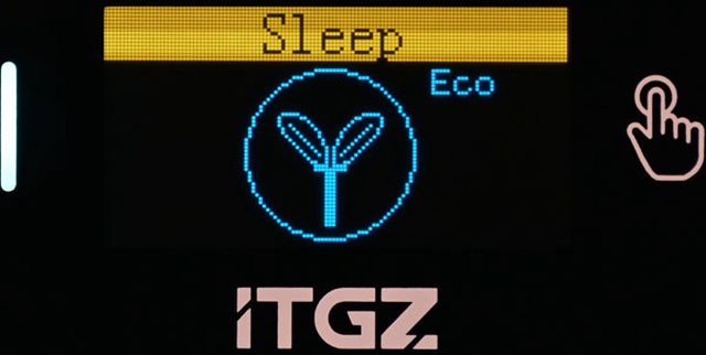 ▼裝置休眠或可安全退出時,指示燈會恆亮藍色,螢幕會顯示Sleep及Eco樹葉圖