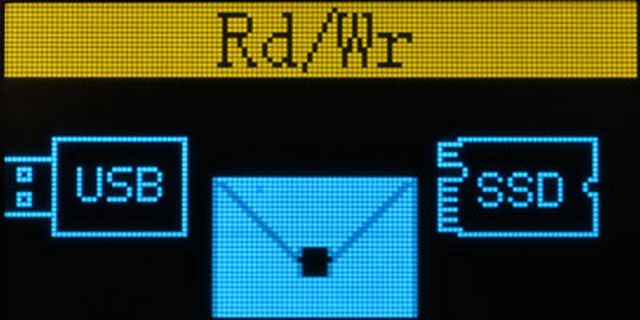 ▼進行讀寫時,指示燈會閃爍綠色,螢幕會顯示Rd/Wr及信封移動的動畫