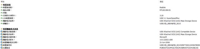 ▼HWiNFO硬體資訊內容,橋接晶片為Realtek RTL9210B-CG