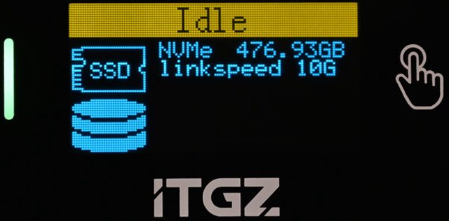 ITGZ智慧螢幕顯示NVMe/SATA雙協議M.2 SSD外接盒ITH80-U057的內建OLED螢幕可顯示SSD