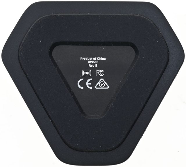 ▼RW500讀卡機頂部有類似高爾夫球表面的圓形凹槽花紋,中間有商標,其中1個角有指示