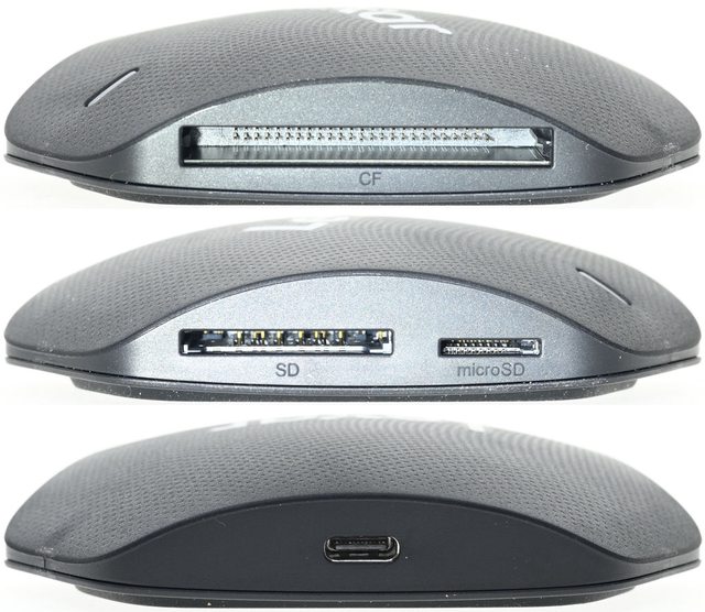 槽(中)、USB-C插座(下),SD/microSD/CompactFlash可同時插卡使用