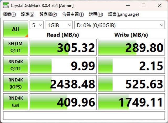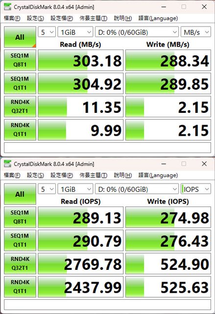 統碟,維持在284至287MB/s的速度