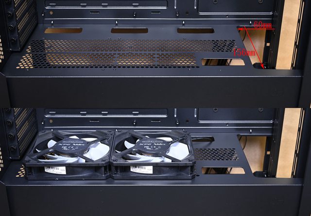 開口大小156×60mm,網狀通風口可安裝2個120mm風扇