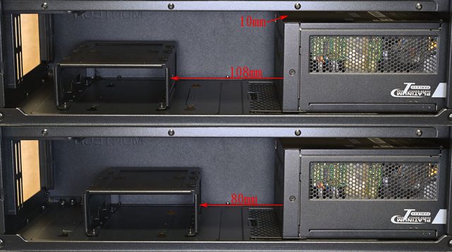 是108mm及80mm,電源供應器上方與電源艙頂部距離10mm