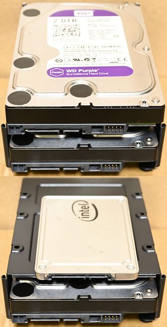 ▼3.5吋/2.5吋固定架安裝2個3.5吋硬碟(上)或1個2.5吋SSD加1個3.5吋硬碟(下)示意圖