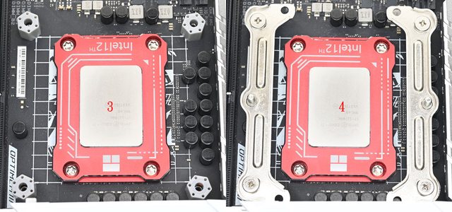 ▼安裝於LGA1700平台時,先將Intel背板調整成適用LGA1700平台配置,然後把背板4支固